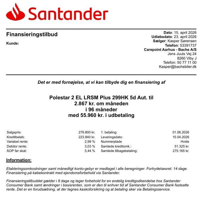 Flot Polestar 2 Plus model i Long Range med 299 hk, det store batteri og en opgivet rækkevidde på hele 659km!